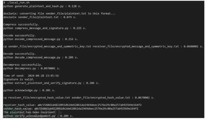 具体流程:首先用单向函数生成明文 P 的摘要(用于后续消息完整性验证),再用私钥 sk 签名摘要(用于后续消息来源验证),而后将签名与摘要压缩(提高传输效率)。为了防止攻击者窃取,用对称密钥 km 加密压缩后的消息,并用接收方的公钥加密 km,最后采用某种编码方式,将消息编码后发送给接收方。接收方收到消息后,按照上述过程的逆过程进行解密。以下是一个 PGP 脚本 demo。